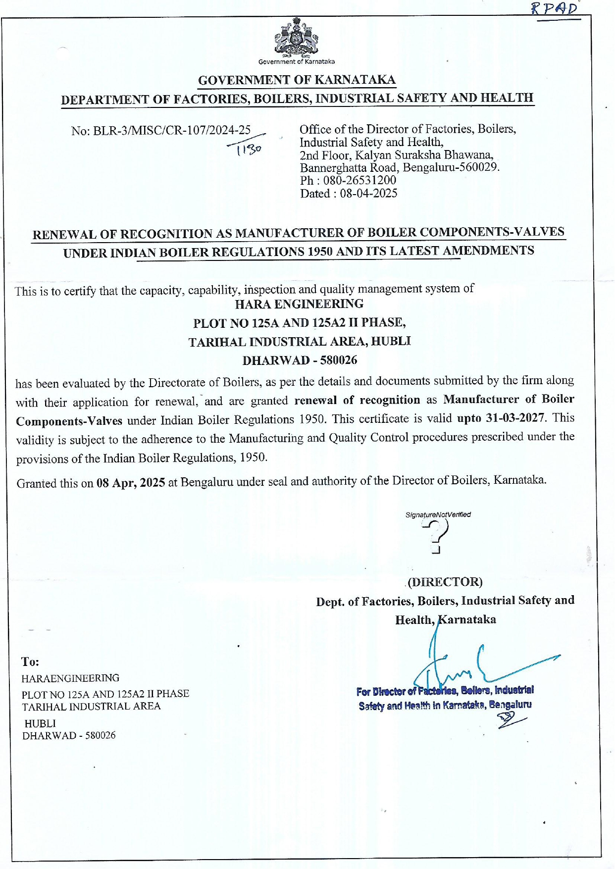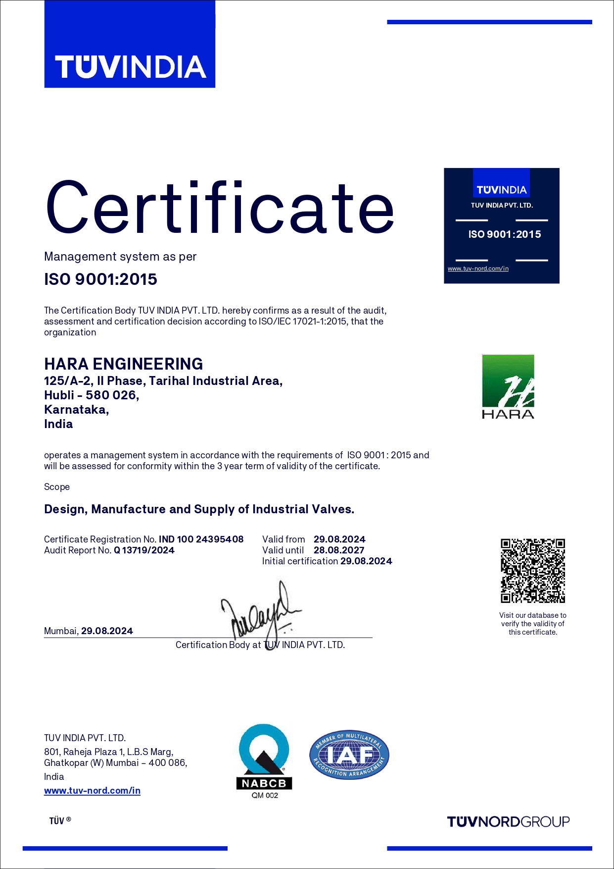 WELCOME TO HARA VALVE ISO APPROVED IBR CERTIFIED OHSAS ISO Certificate IBR Certificate EMS TDC CERTIFICATE EIL CERTIFIED OPD stat of March NSIC CERTIFICATE ZERO EFFECT ZERO DEFECT CERTIFICATE
